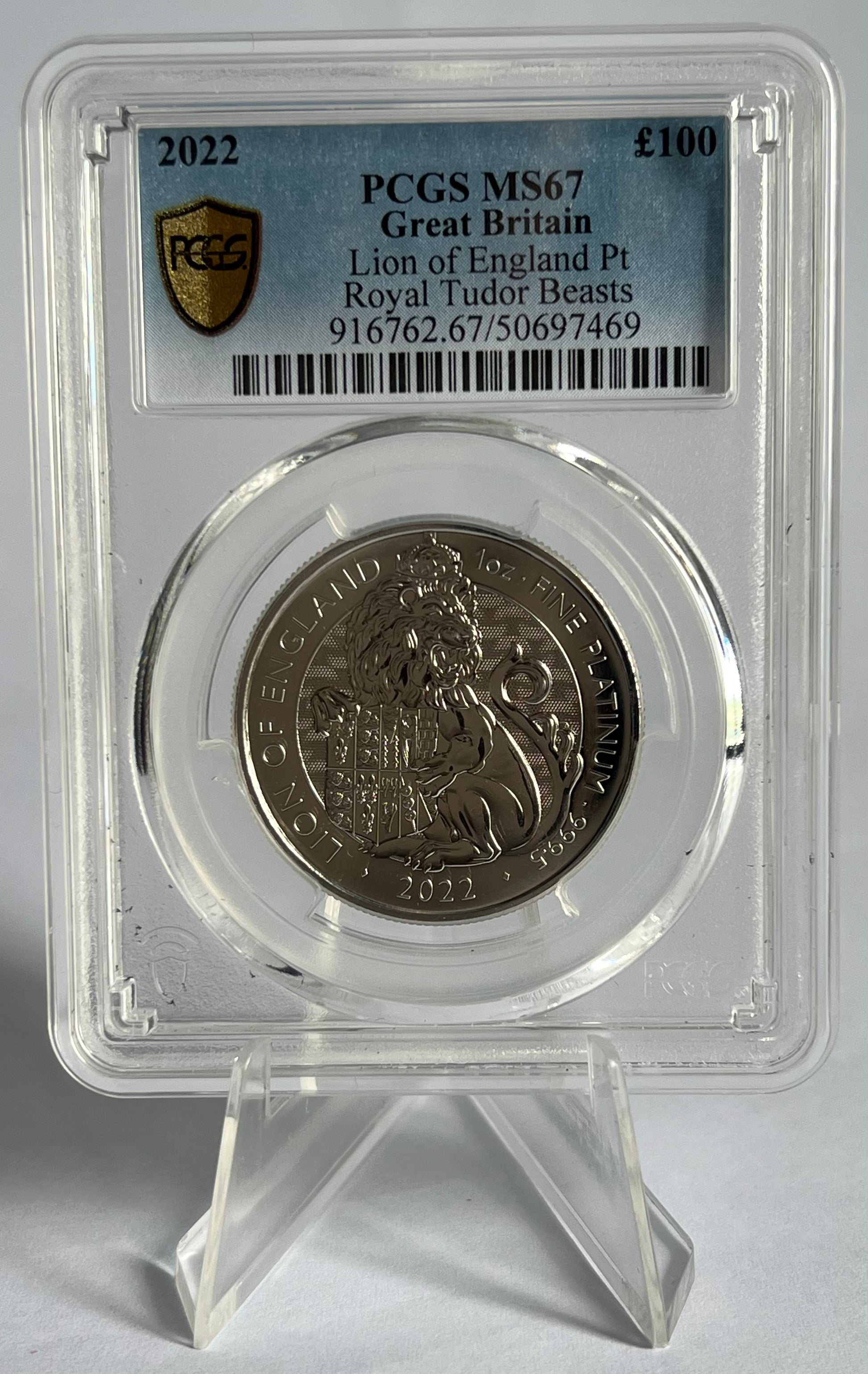 2022 Great Britain Royal Tudor Beasts The Lion of England 1 oz Platinum Coin PCGS MS67